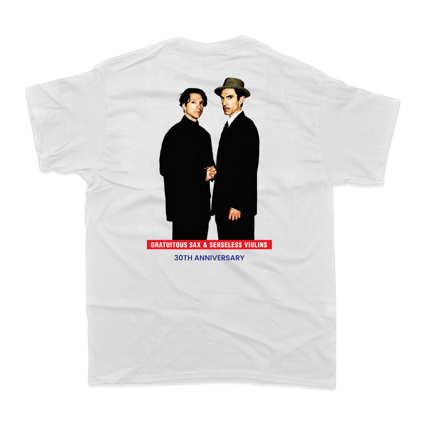 GRATUITOUS SAX & SENSELESS VIOLINS 30TH ANNIVERSARY T-SHIRT (WHITE)